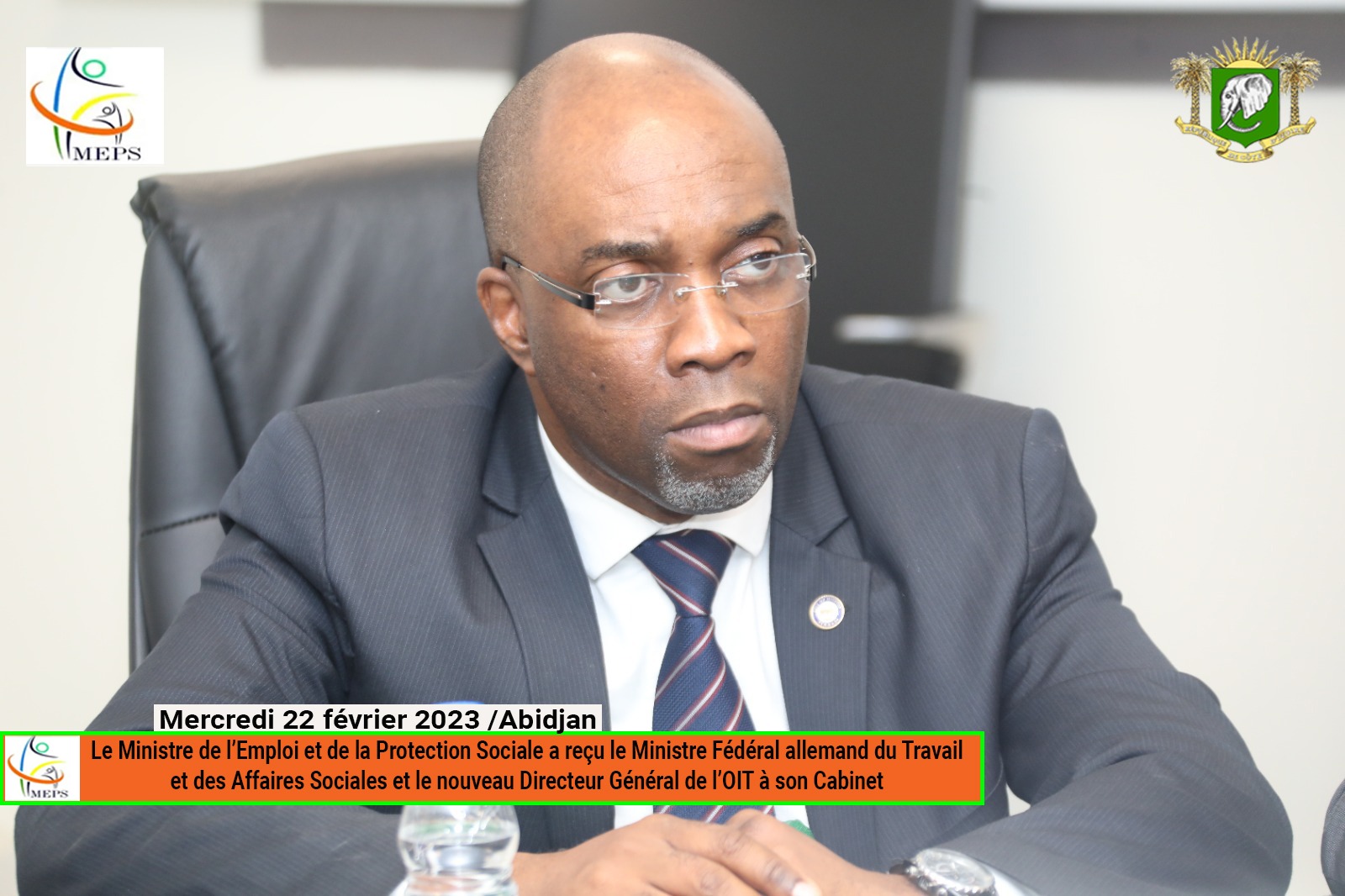 Photos - Promotion du Travail décent en Côte d’Ivoire Maître Adama KAMARA reçoit le Ministre Fédéral allemand du Travail et des Affaires Sociales et le nouveau Directeur Général de l’OIT à son Cabinet